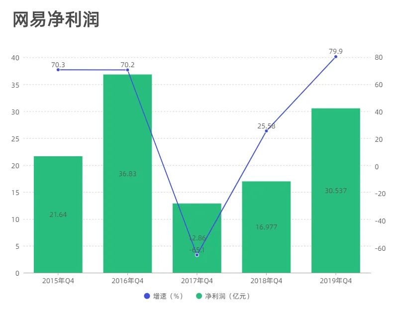 2019年进行了“大瘦身”,将跨境电商产品网易考拉卖给阿里巴巴,将网易云阅读、网易文漫出售给杭州平治信息(50.490, 0.79, 1.59%)。“大瘦身”后,网易2019年Q4季度净利润达30.537亿元,同比增长79.9%,创下近几年新记录。
