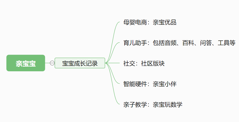 从亲宝宝的拓展路径来看,宝宝成长记录只是产品的核心功能,用户数突破到一定程度后,就可以向社区和电商、亲子教育三大产品线拓展。