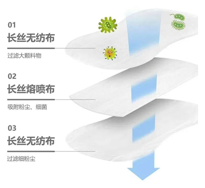 口罩最重要的部分要数口罩的面料。面料一般是由面层、滤层以及里层构成。简单来看,市场上普通医用口罩(SMS)一般是由纺粘无纺布的面层、熔喷布滤层以及纺粘无纺布里层构成。而立体的杯状口罩一般是由涤纶针刺棉面层、熔喷布滤层以及针刺棉或者无纺布里层构成。针对颗粒过滤效率(PFE)的不同划分了口罩的型号,在口罩当中起到过滤作用的便是作为滤层的熔喷布。